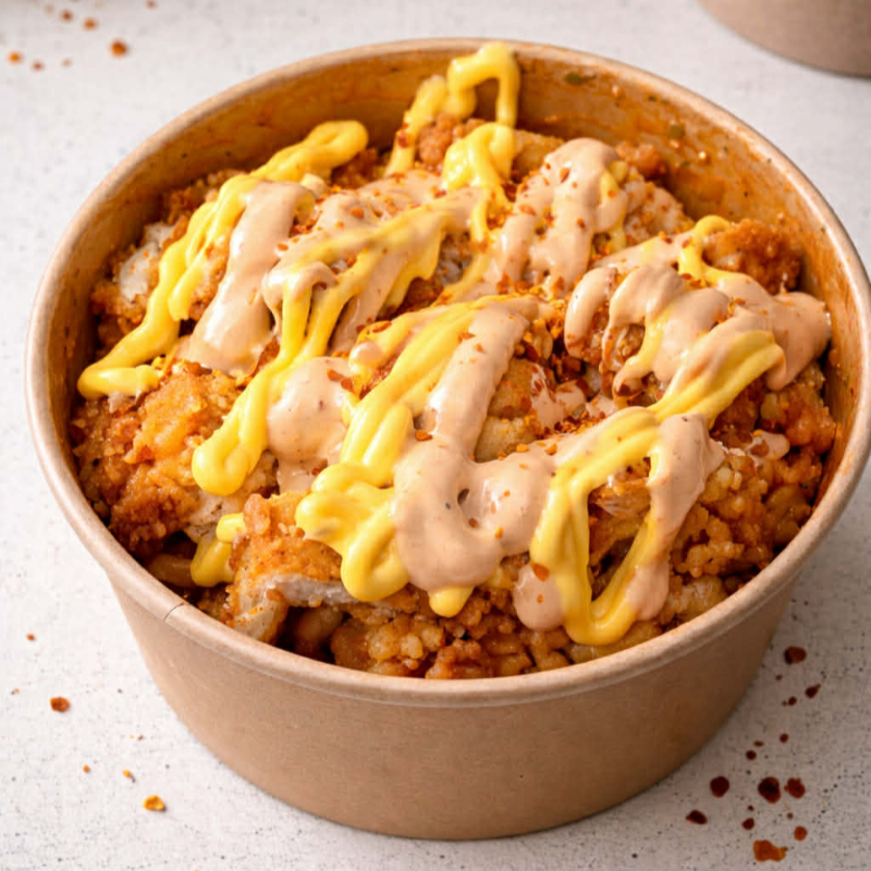 Ramen buldak carbonara con 100 g de trozos de tenders crujientes, aderezo a elegir y queso cheddar. Un combo cremoso, picante y brutalmente antojable. 😮🔥