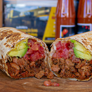 EXTRA carne a la plancha, aguacate, tocino, chile verde, frijoles, cebolla asada y EXTRA queso.