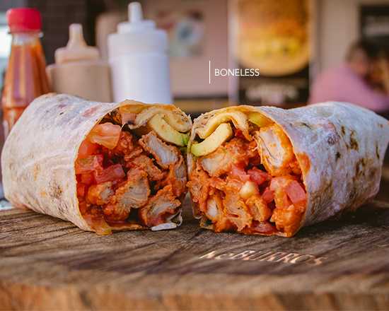 Pollo bañado en la salsa de tu elección, tomate, aguacate, queso y mayonesa.