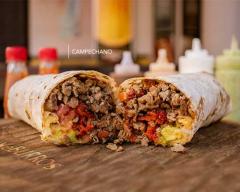 Carne a la plancha, extra queso, frijoles, tomate, aguacate y mayonesa.