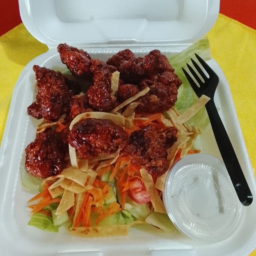 Ingredientes: 150 gr de boneless salsa de tu elección, bañados de queso cheddar, lechuga, tomate, zanahoria y papas ala francesa.