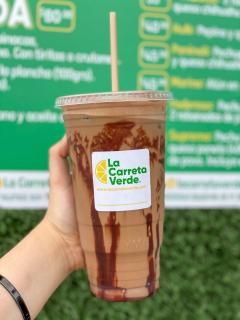 Licuado de chocolate con plátano, fresa y canela. 600 ml