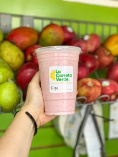 Licuado de fresa y plátano con leche de su preferencia. 600 ml
