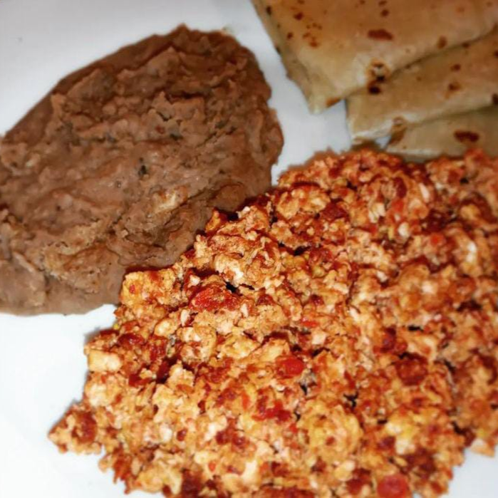 2 Huevos revueltos con jamón, salchicha, tocino, chorizo o machaca. Acompaña con frijol, tortilla de maíz, harina o pan tostado.