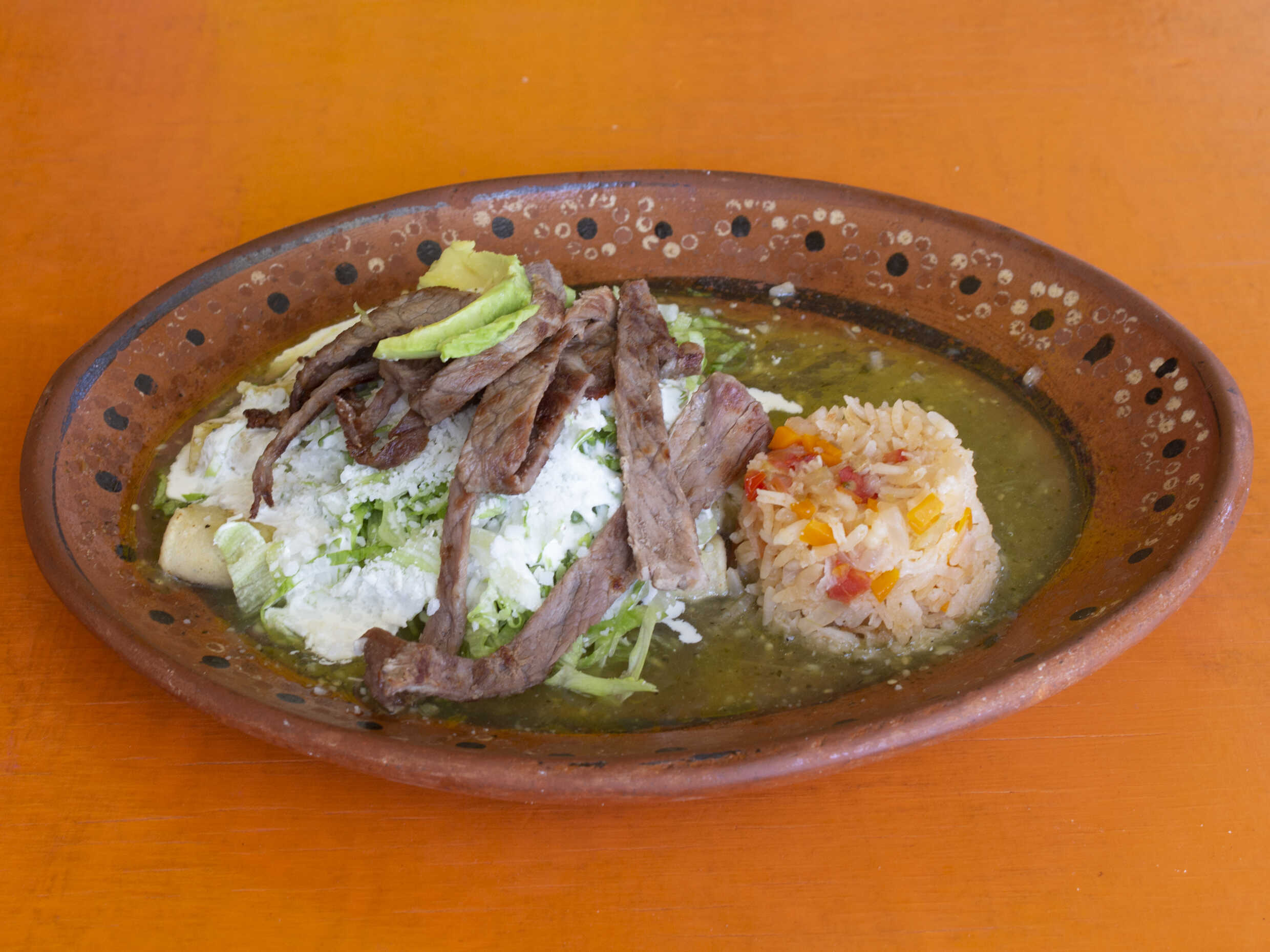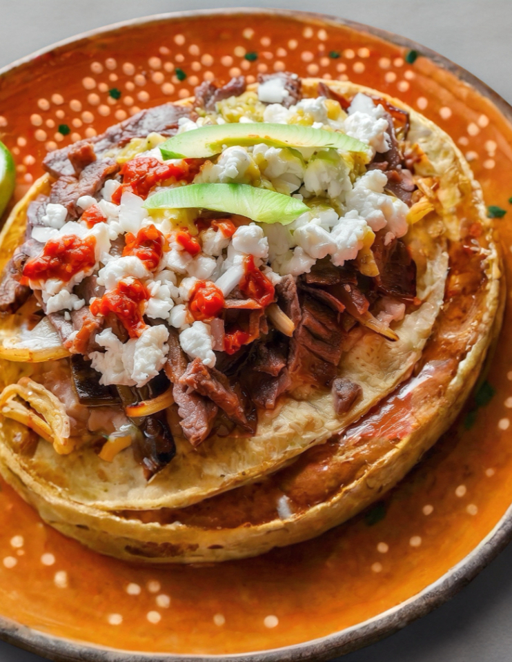 ASADA ACOMPAÑADA DE 3 ENCHILADAS RELLENAS DE QUESO Y FRIJOLES