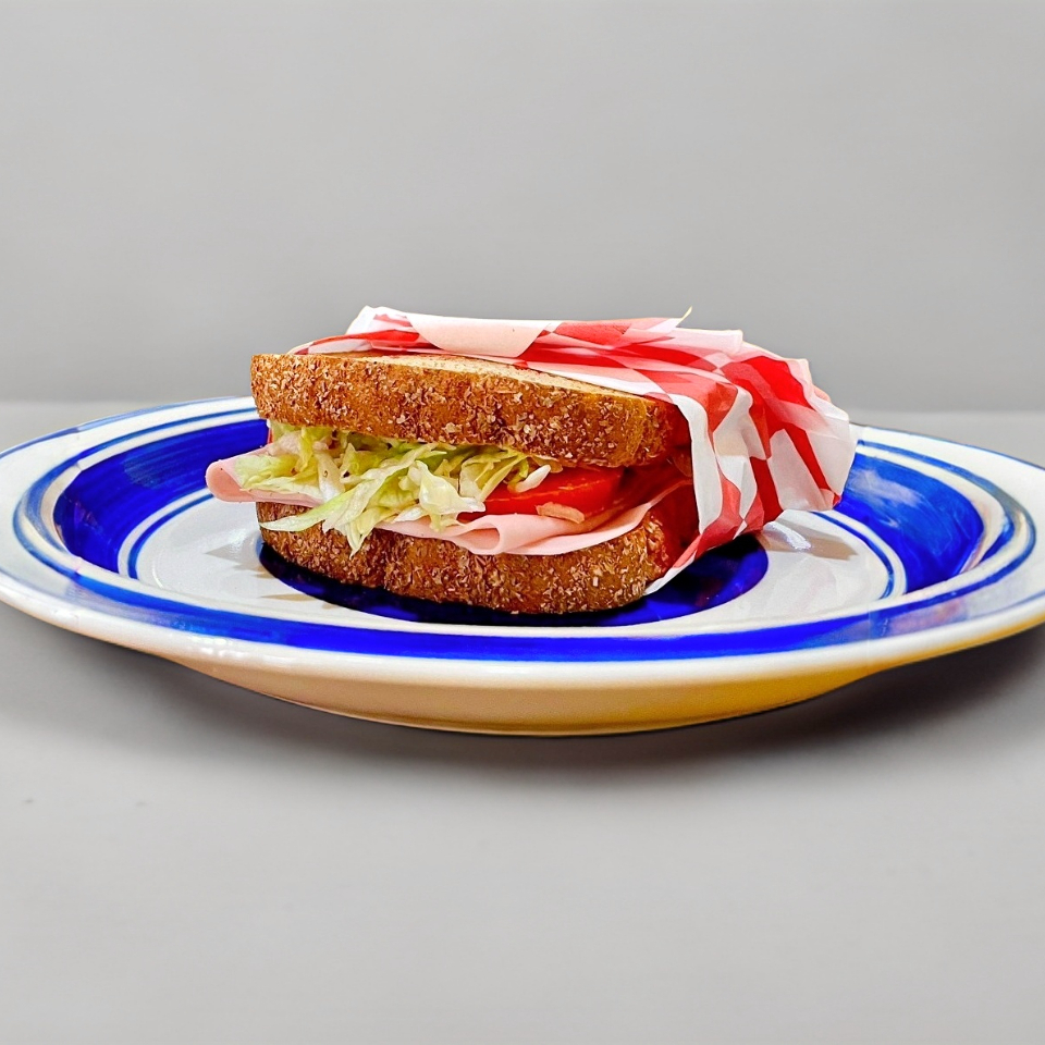 SANDWICH DE JAMON CON QUESO, VERDURA Y AGUACATE.