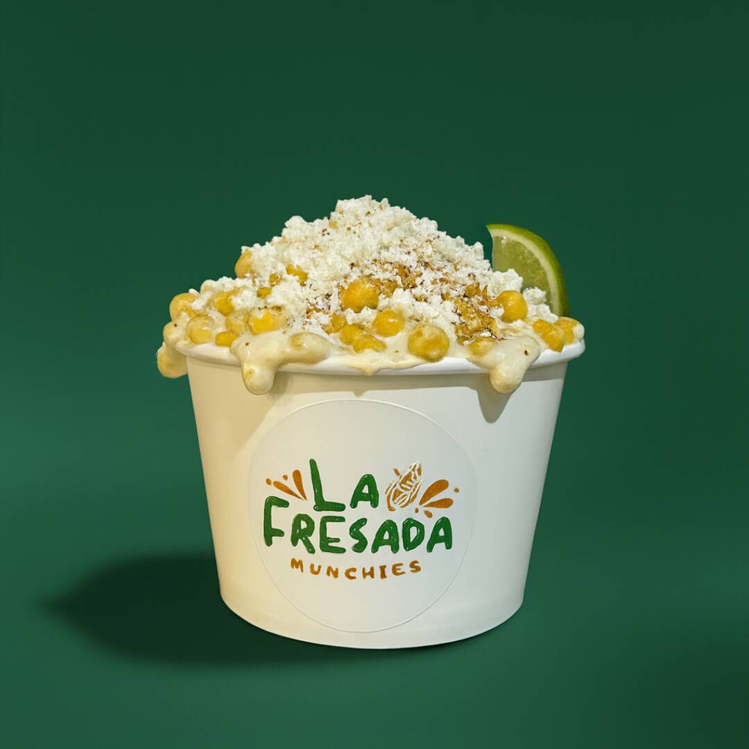 Elote preparado con mantequilla, crema, mayonesa, queso blanco.