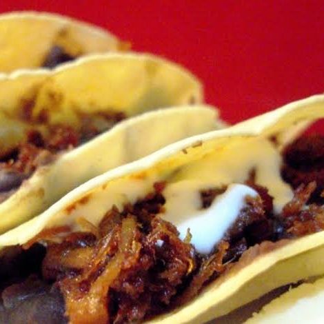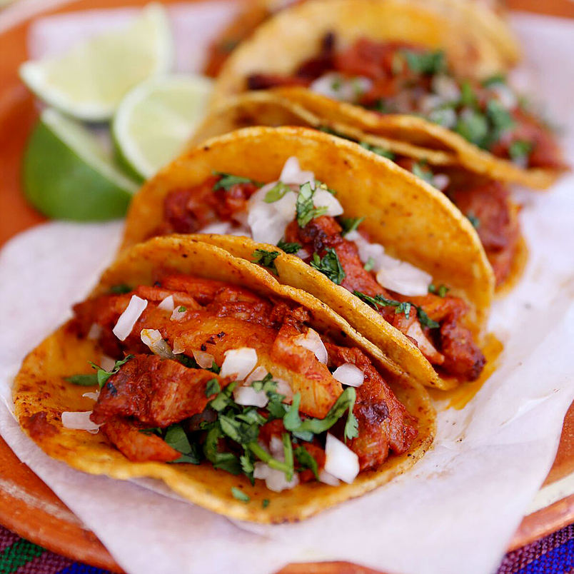 Tortilla de maíz o de harina con carne adobada de cerdo a la plancha, tortilla dorada o blanda (verdura y salsa adicional).