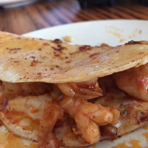 Tortilla de maíz con camarón y queso chihuahua, tortilla dorada o blanda (verdura y salsa adicional).