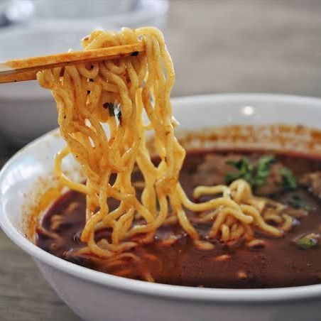 Medio litro de ramen con caldo de birria y carne (verdura y salsa adicional).