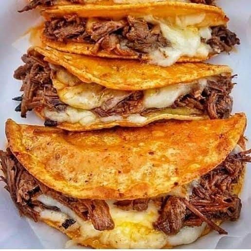 Tortilla de harina o maiz birria de res y queso chihuahua, tortilla dorada o blanda (verdura y salsa adicional).maiz