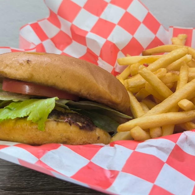 100 gramos de carne. Queso americano,chile verde tatemado,costra de queso Chihuahua, lechuga, tomate, cebolla caramelizada, aderezo de la casa.
