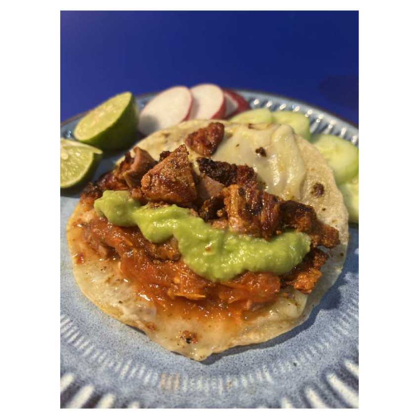 Delicioso taco de carne adobada de puerco