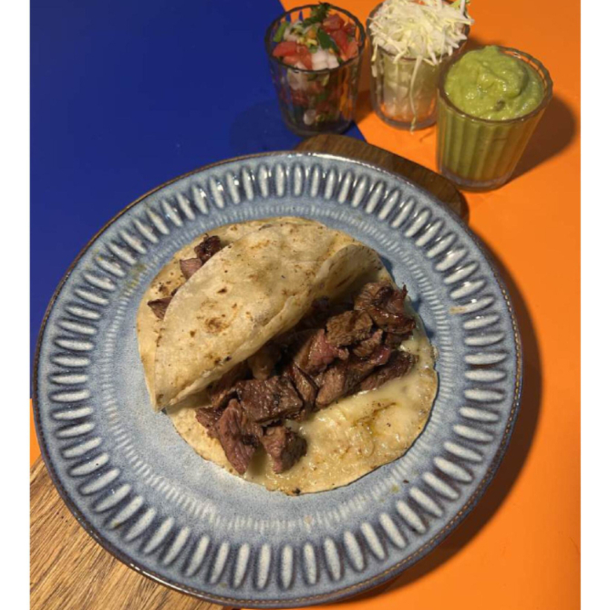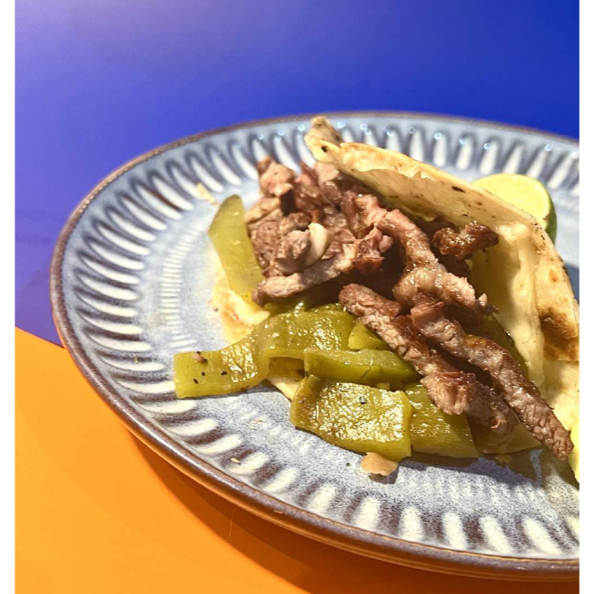 Taco de carne asada de res con carne y queso