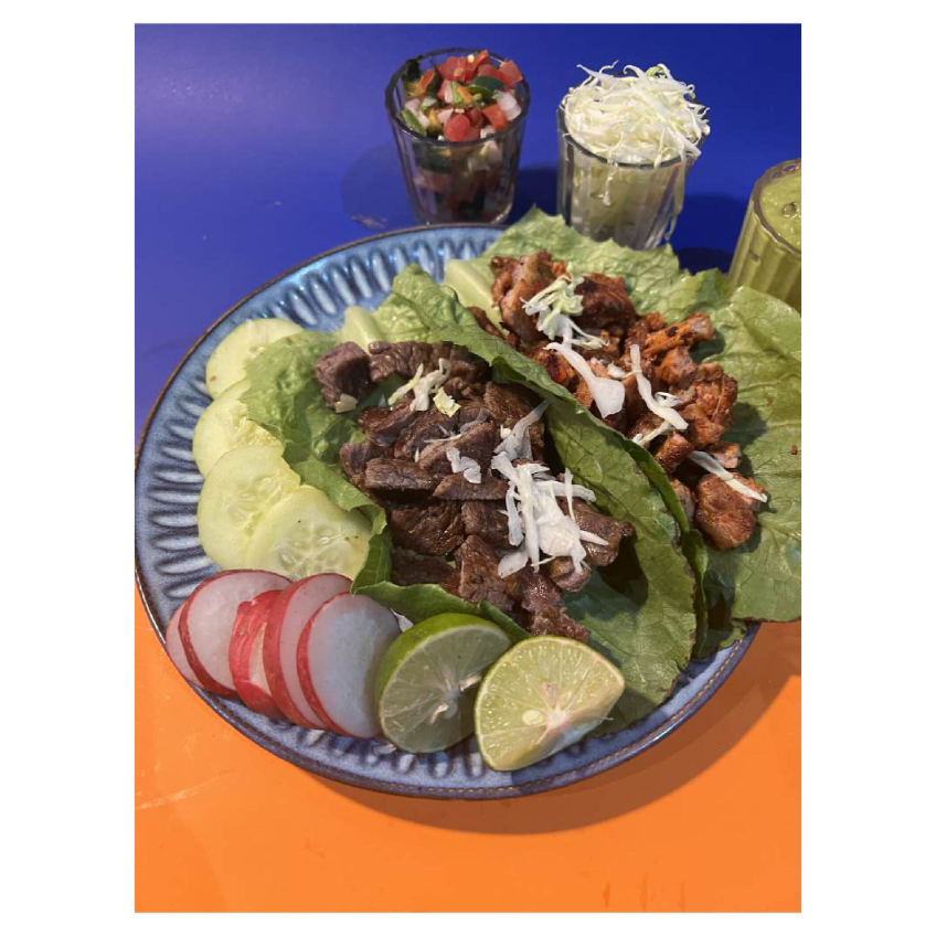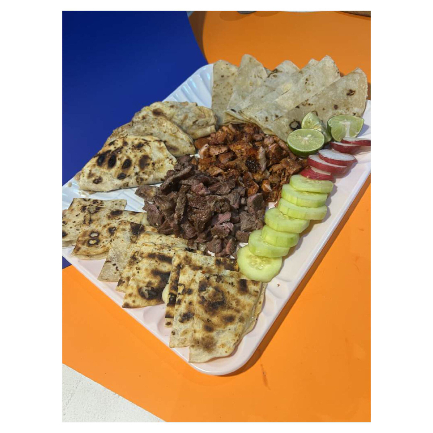 Mix de carne con tortillas, quesadillas y taquitos de frijol