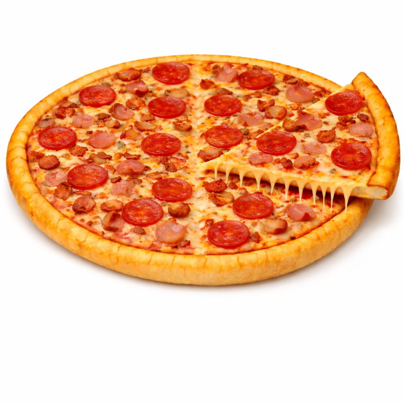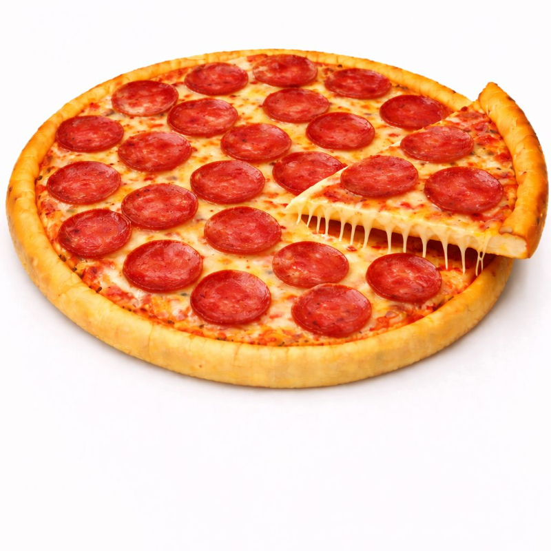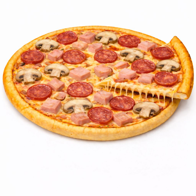 14" Familiar, Pepperoni, jamón y salchicha de pavo con un sabor clásico y balanceado.
