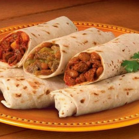 4 Burritos de 1 guiso a elegir en Tortilla de Harina Tradicional Sonorense, 30 gr de 1 Guiso a Elegir, Acompañado de Salsa Picante.