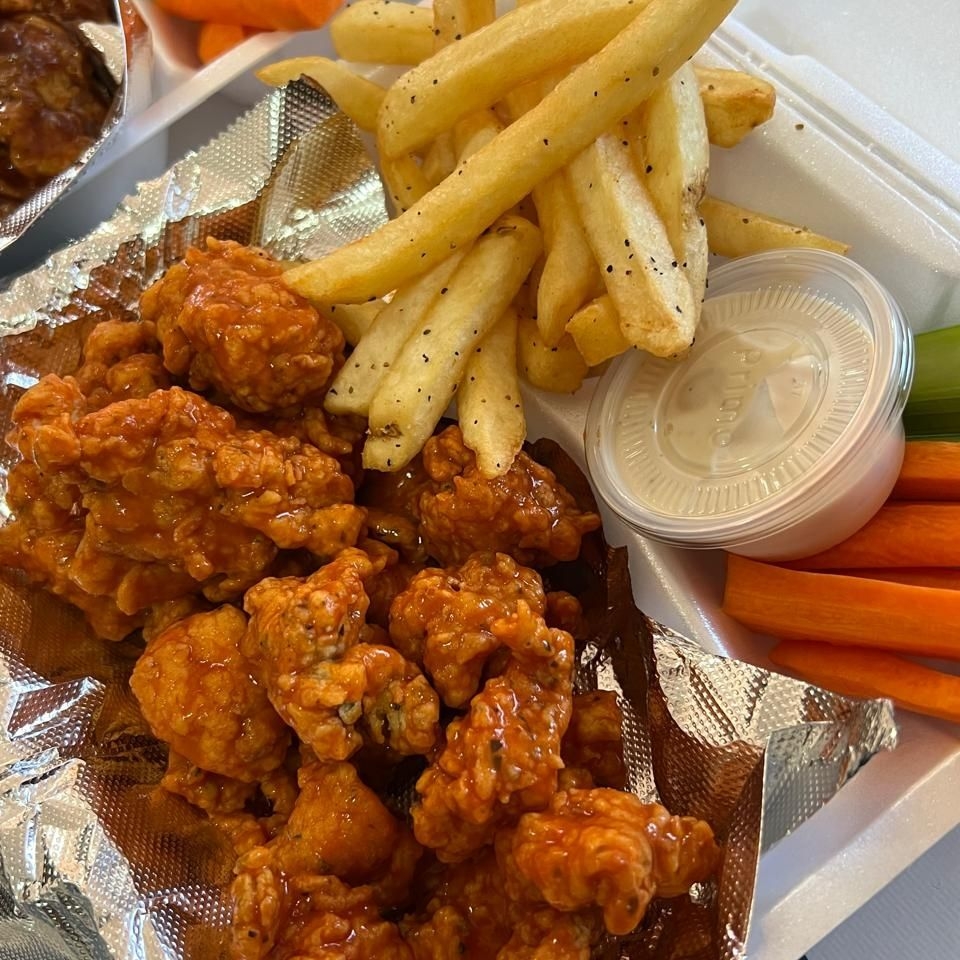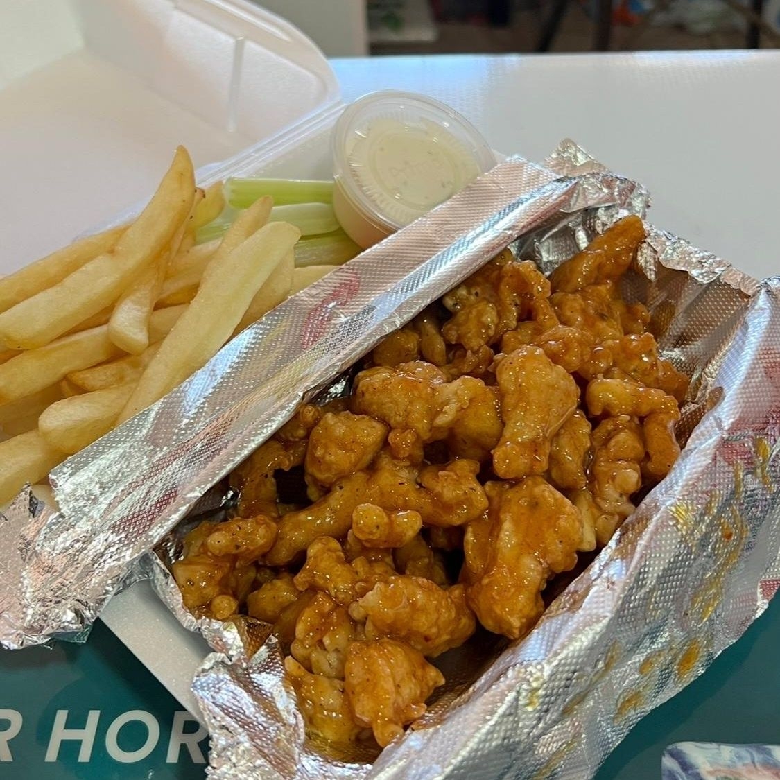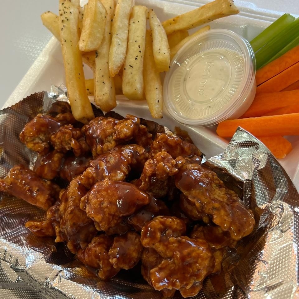 Ensalada de Boneless, puedes seleccionas la salsa entre Buffalo o BBQ.