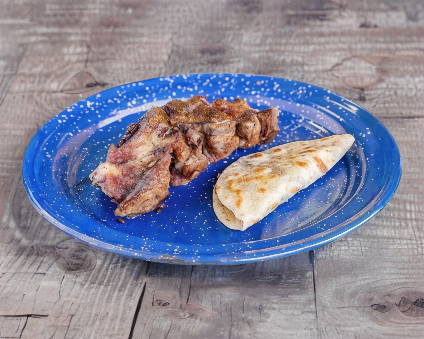 Tortilla de harina o maíz con tripitas asadas al carbón.