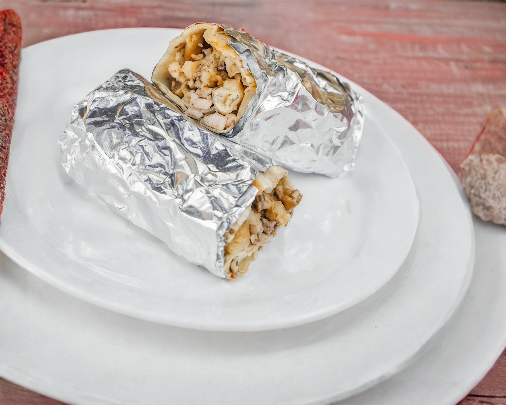 Tortilla de harina o maíz con pechuga de pollo asada y picada. Todos nuestros envíos llevan verduras y salsas para acompañar su pedido.