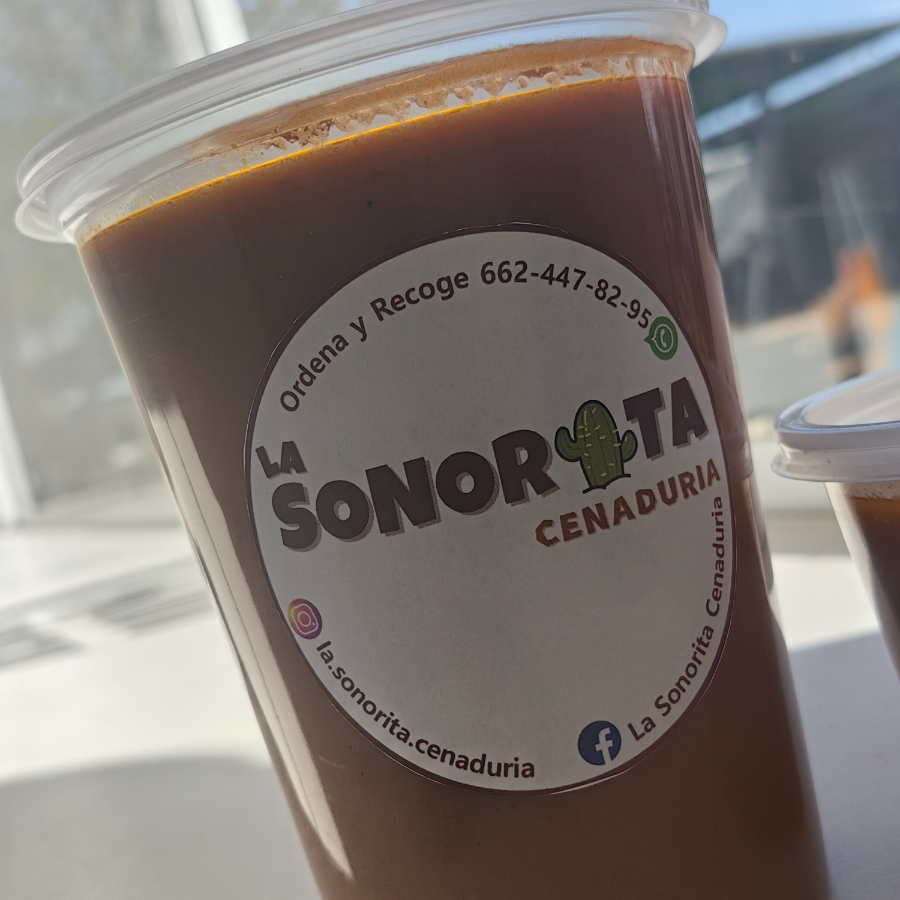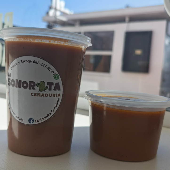 Caldo a base de chile colorado, con maíz (200gr) y pierna de puerco (100gr)