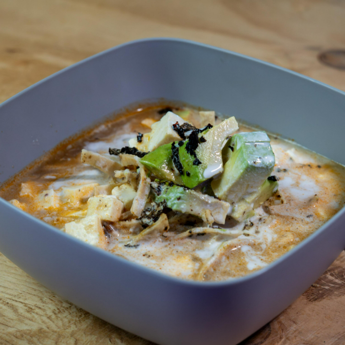 La clásica solo que mejor!! Fritura de maíz, aguacate, queso fresco, crema, fritura de chile pasilla y caldillo a base de tomate y chipotle.