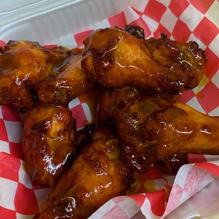 Bañadas en nuestras salsas acompañadas apio, zanahoria y porcion de Ranch.