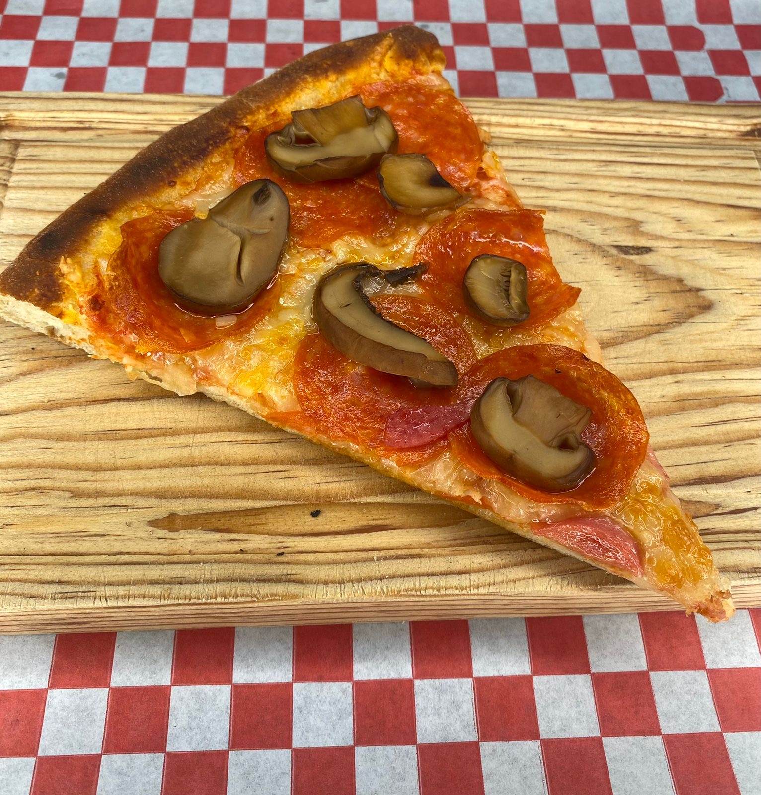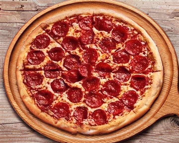 Pizza grande o familiar a elegir, ingredientes: pepperoni o jamón con champiñón.