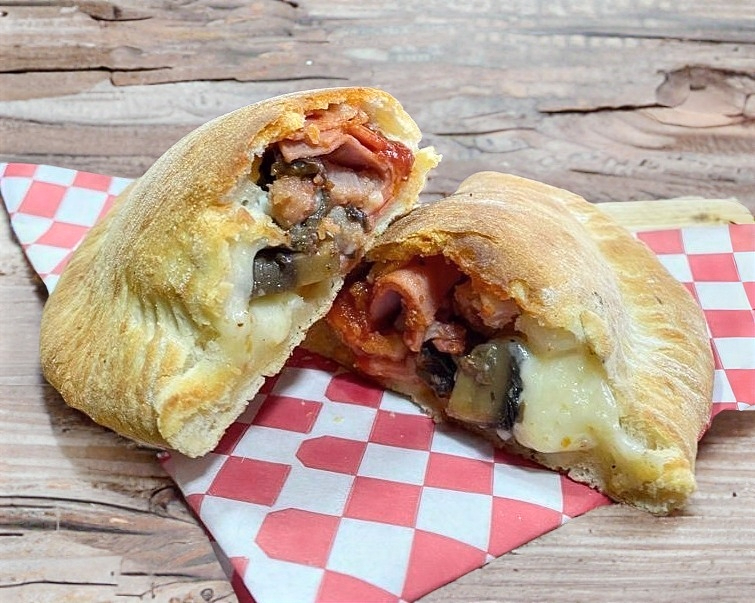 Especialidad de la cocina italiana, elaborada de forma similar a una empanada, elaborada a base de masa de pizza rellena de queso más 2 ingredientes a elegir.
