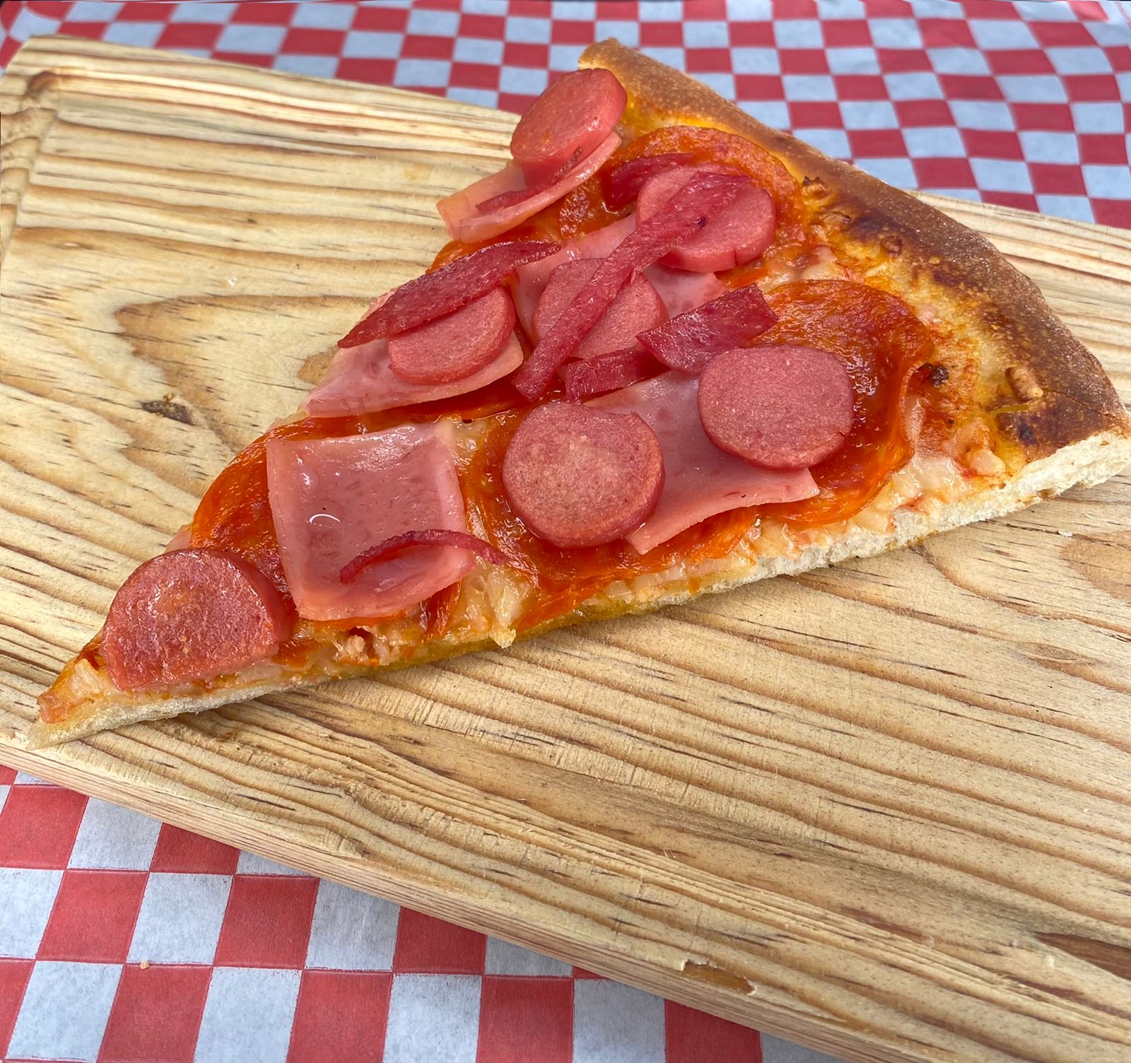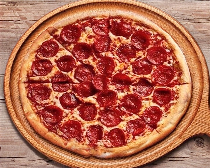 Pizza grande o familiar a elegir, ingredientes: jamón, salchicha, salami y pepperoni.