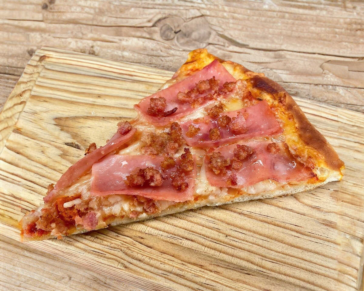 Pizza grande o familiar a elegir, ingredientes: jamón y tocino.