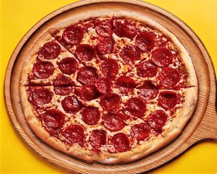 Pizza grande o familiar a elegir, ingredientes: pepperoni o jamón con champiñón.