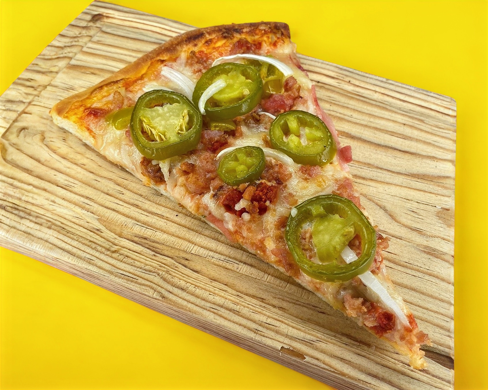 Pizza grande o familiar a elegir, ingredientes: chorizo, frijol, tocino, jalapeño y cebolla.