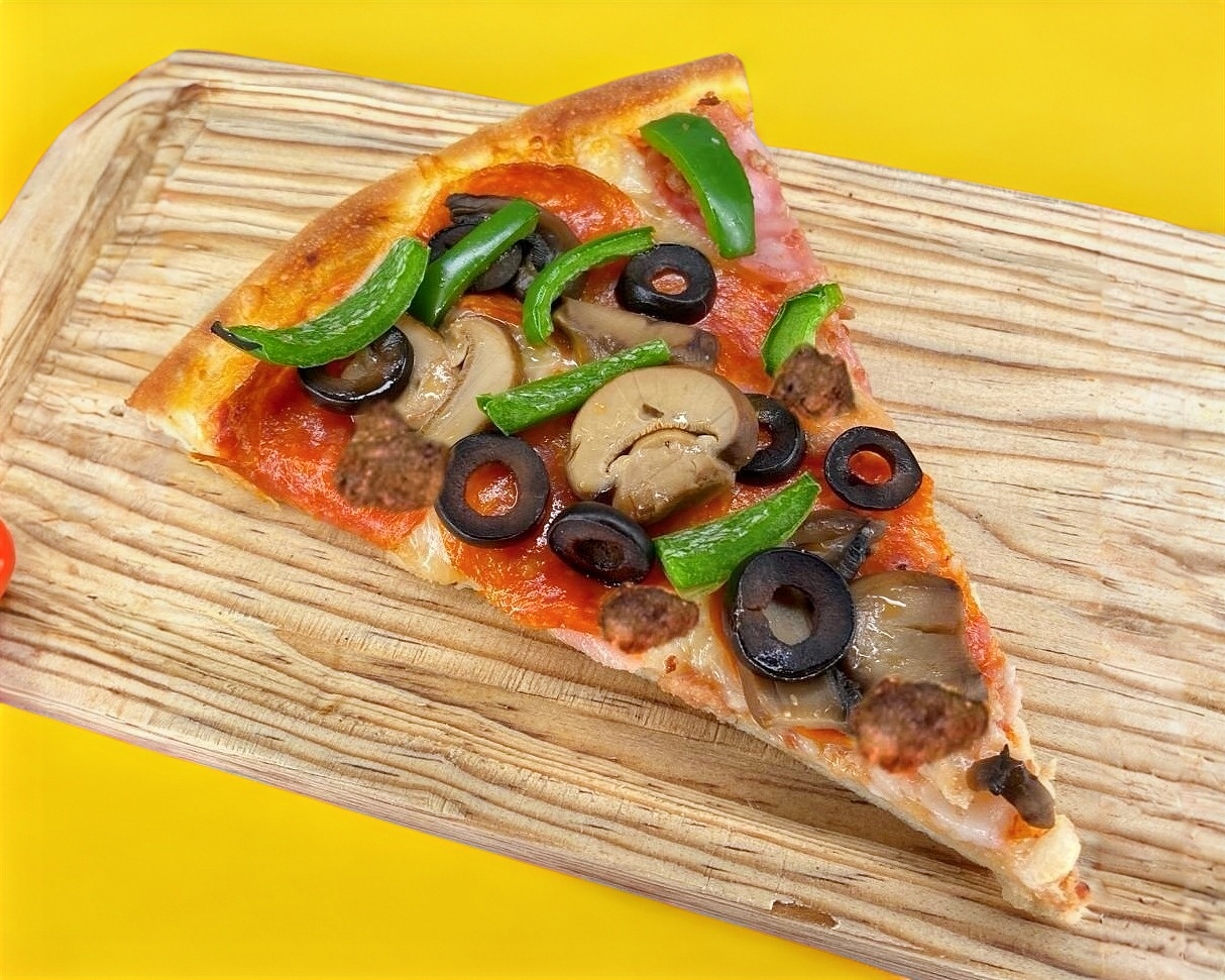 Pizza grande o familiar a elegir, ingredientes: pepperoni, salchicha italiana, champiñón, aceitunas negras y pimiento morrón.