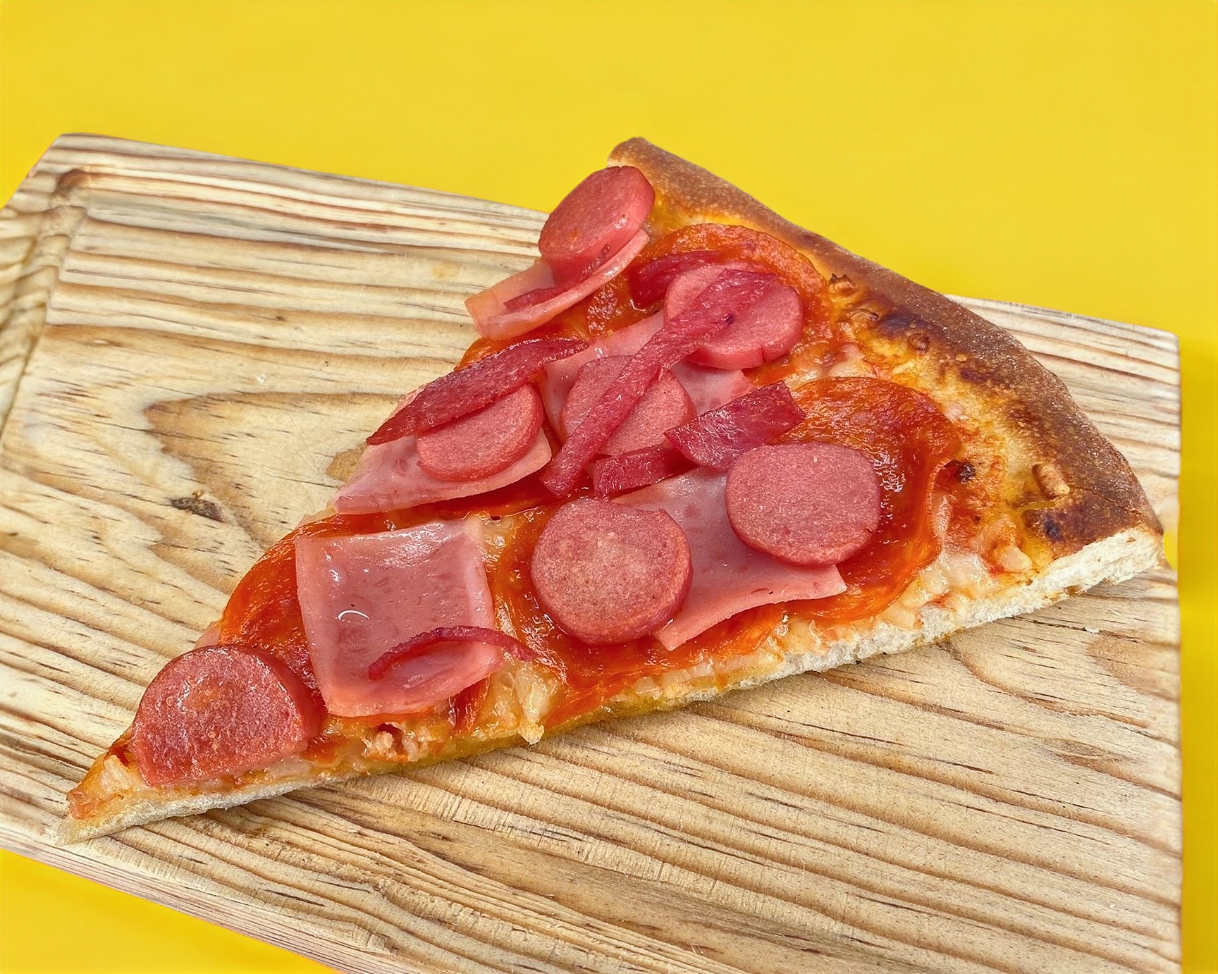 Pizza grande o familiar a elegir, ingredientes: jamón, salchicha, salami y pepperoni.