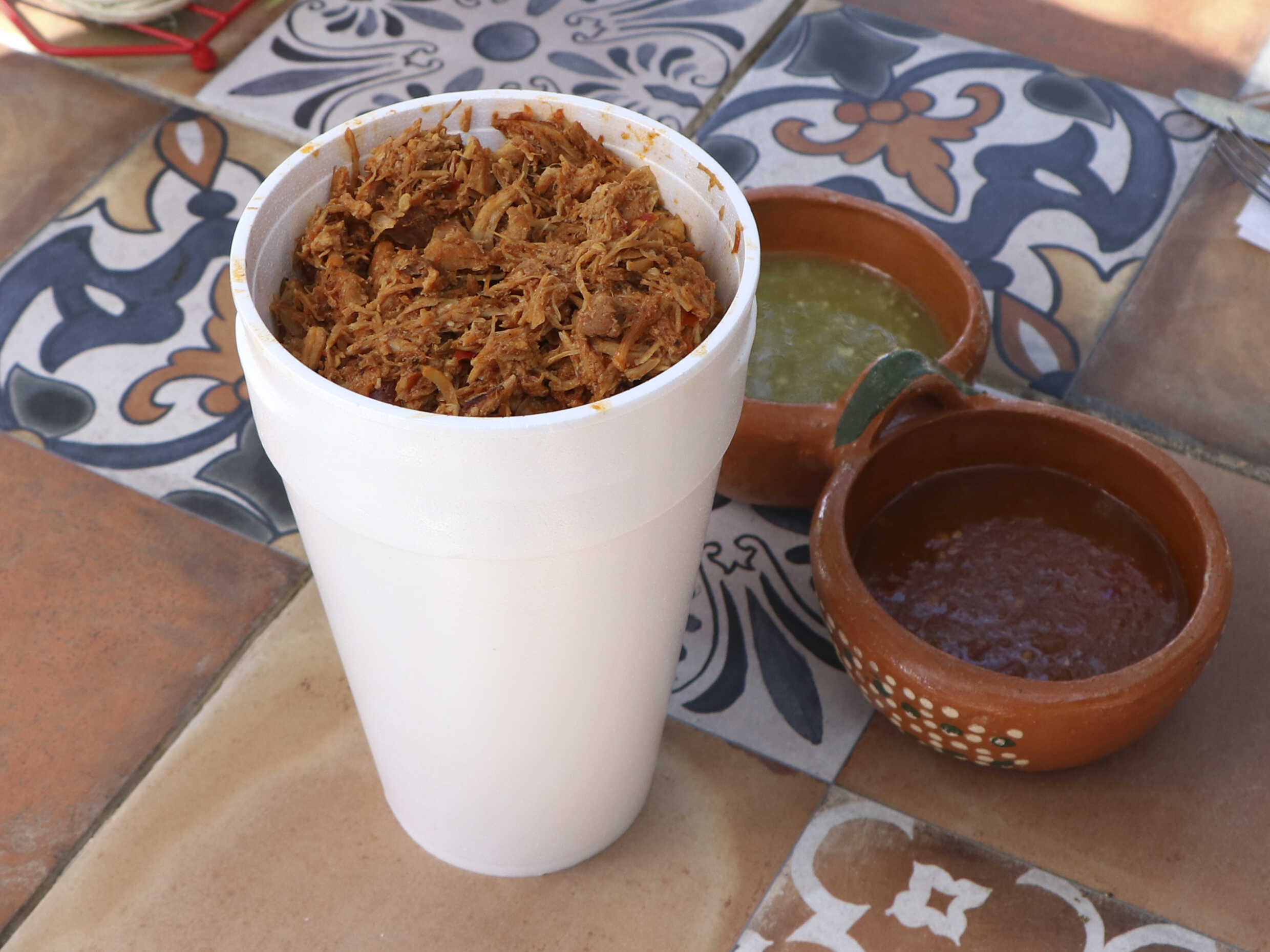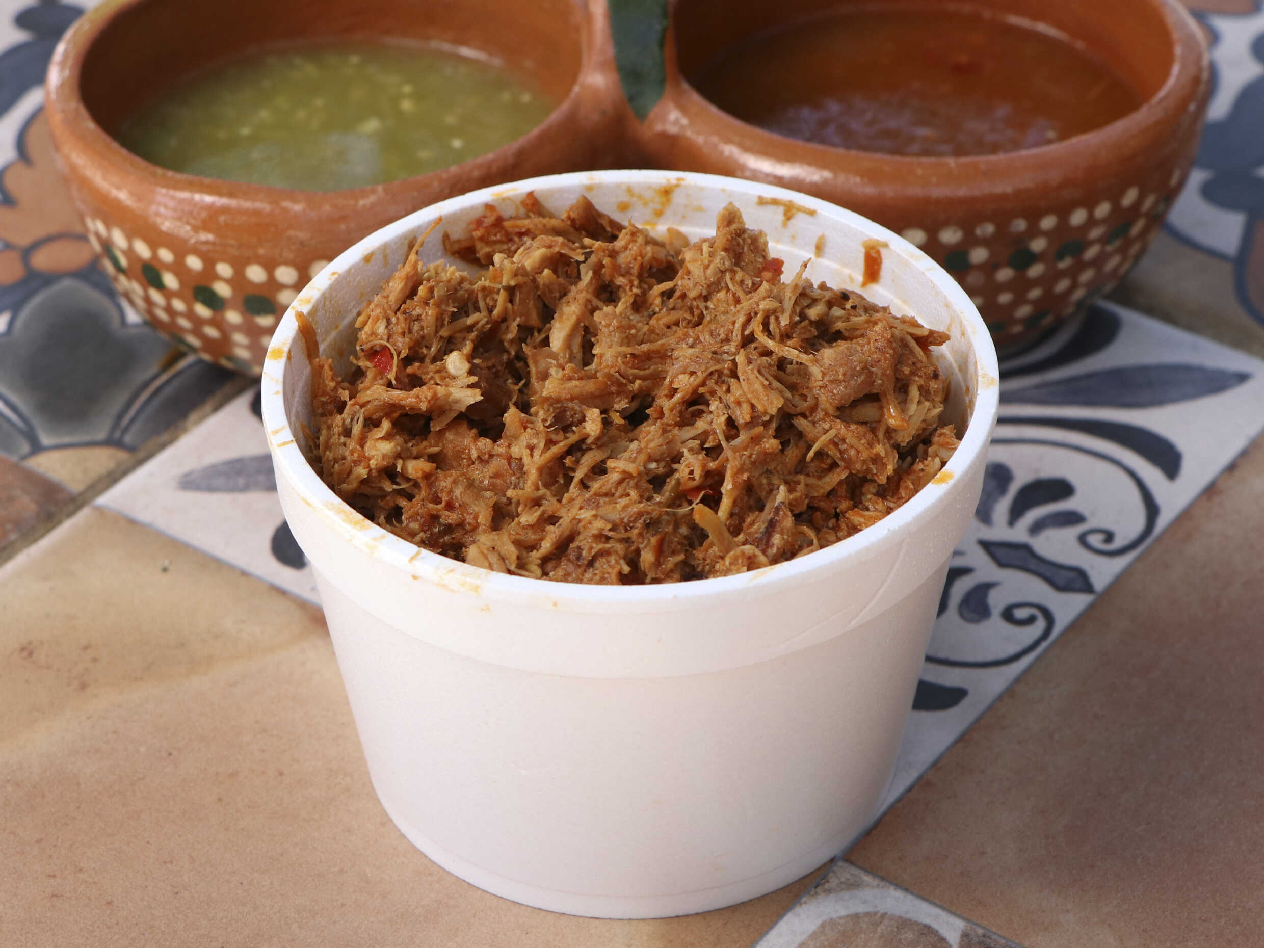 Barbacoa, acompañada de tortillas, verduras y salsas