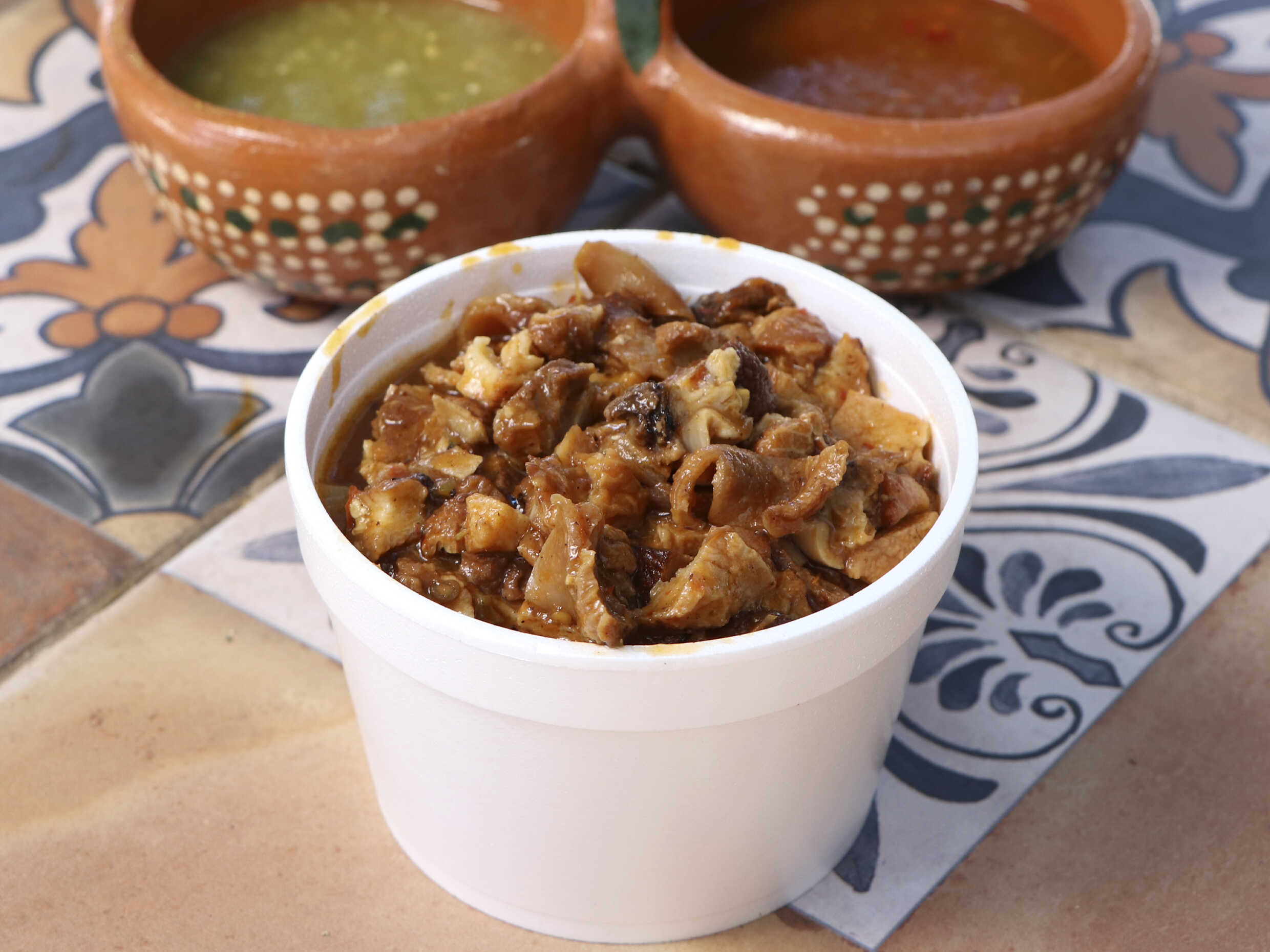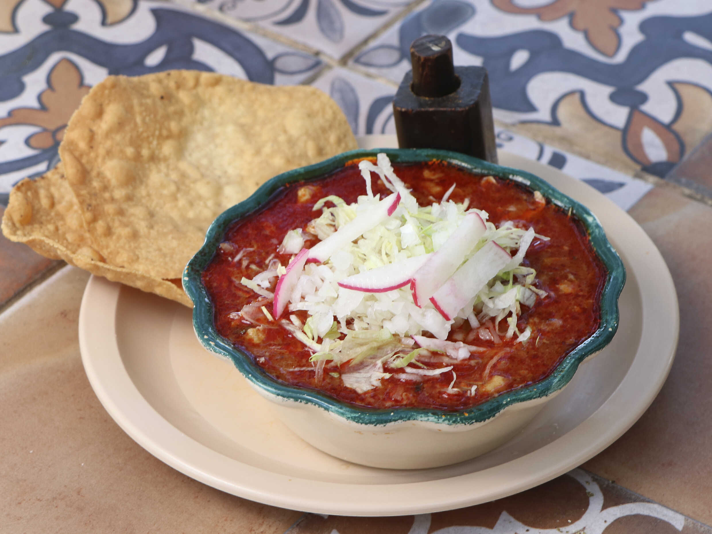1 lt de Pozole, 4 tacos dorados de papa y 1cocas 600ml