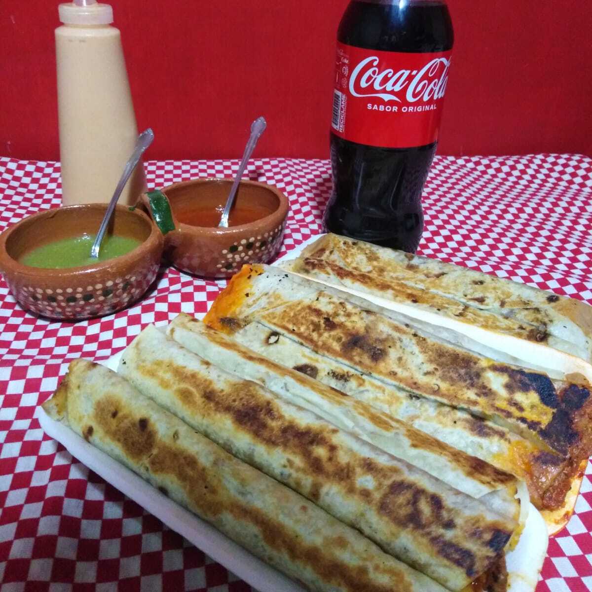 3 paquetes de burritos al comal (3 de guisos y uno de frijo) 600 Coca-Cola