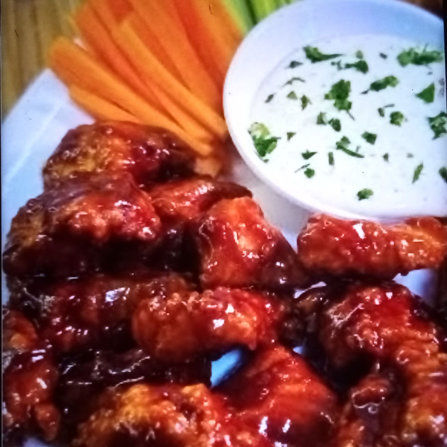ORDEN de Boneless barbacue , acompañados de apio, zanahoria y aderezo ranch