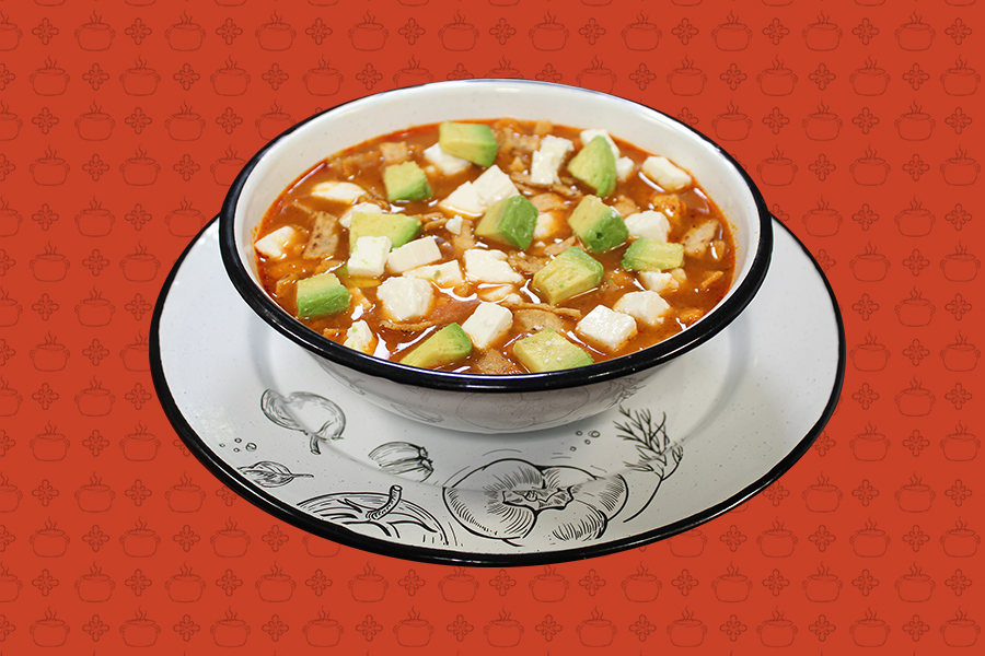 80 GM, PREPARADO EN EL DELICIOSO CONSOMÉ ESPECIAL DE LAS CHULAS. CON UN TOQUE DE CHIPOTLE Y FRITURAS DE MAÍZ. SERVIDO CON QUESO Y AGUACATE.