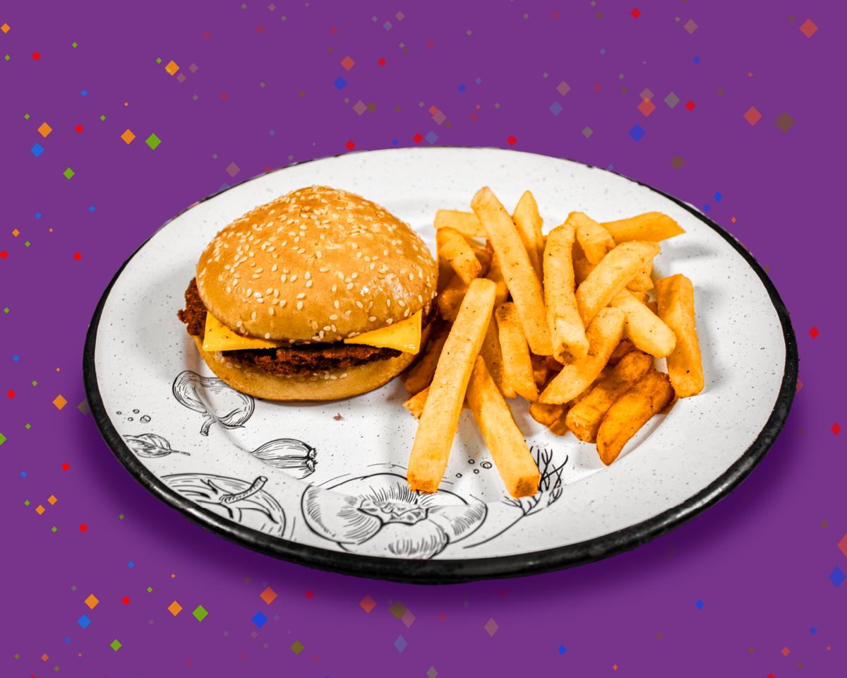 MINI HAMBURGUESA DE CARNE CON QUESO Y PAPAS FRITAS.