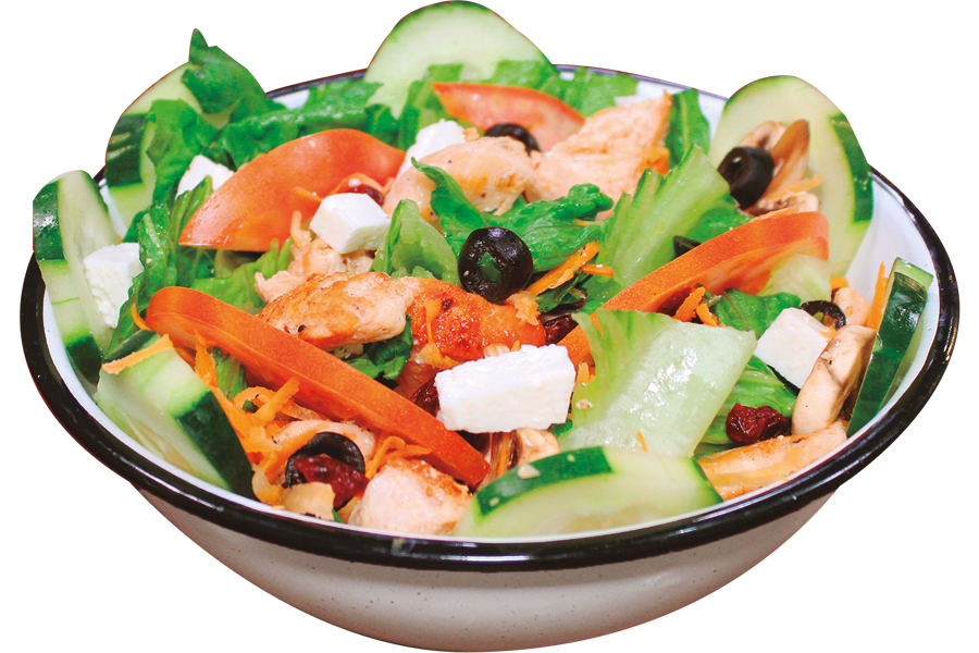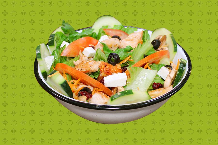 UNA PORCIÓN DE POLLO 100 GM Y TRES INGREDIENTES.