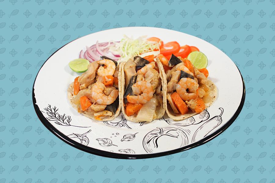 200 GM, DELICIOSA MANTA CON CAMARÓN, SERVIDA CON VERDURA, TORTILLAS O TOTOPOS.