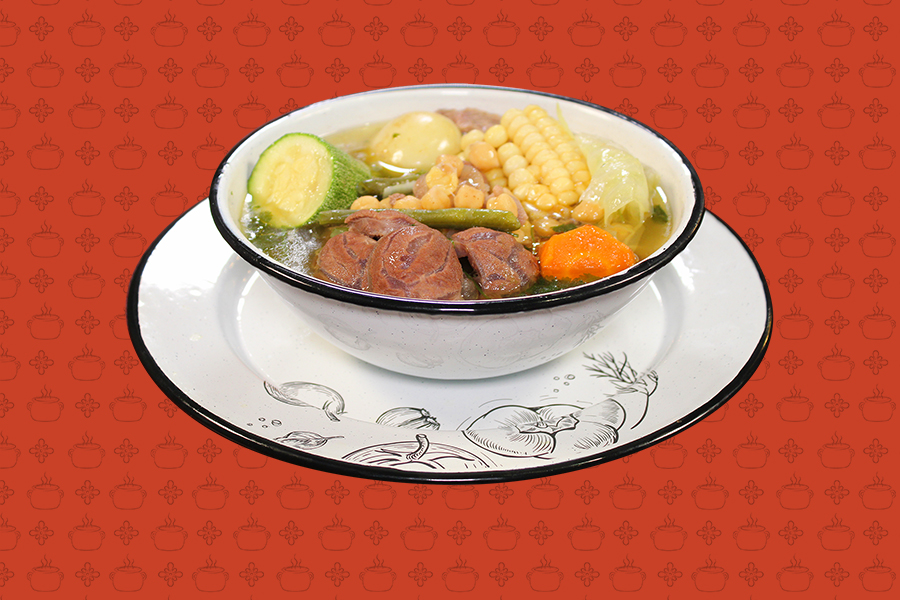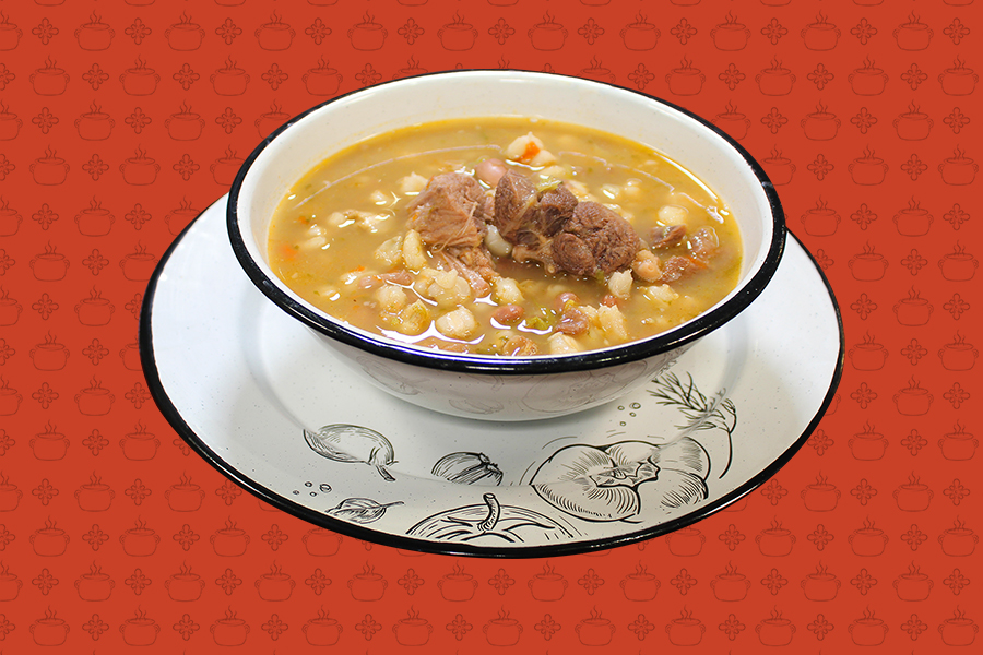 80 GM DE CALDO CON GRAN VARIEDAD DE VERDURAS Y CARNE DE RES. CON GARBANZO Y ELOTE. SERVIDO CON LIMÓN, CHILTEPÍN Y TORTILLAS DE MAÍZ.