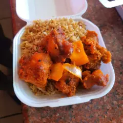 Media porción de arroz, media porción de guiso a elegir, tenedores se venden por separado.