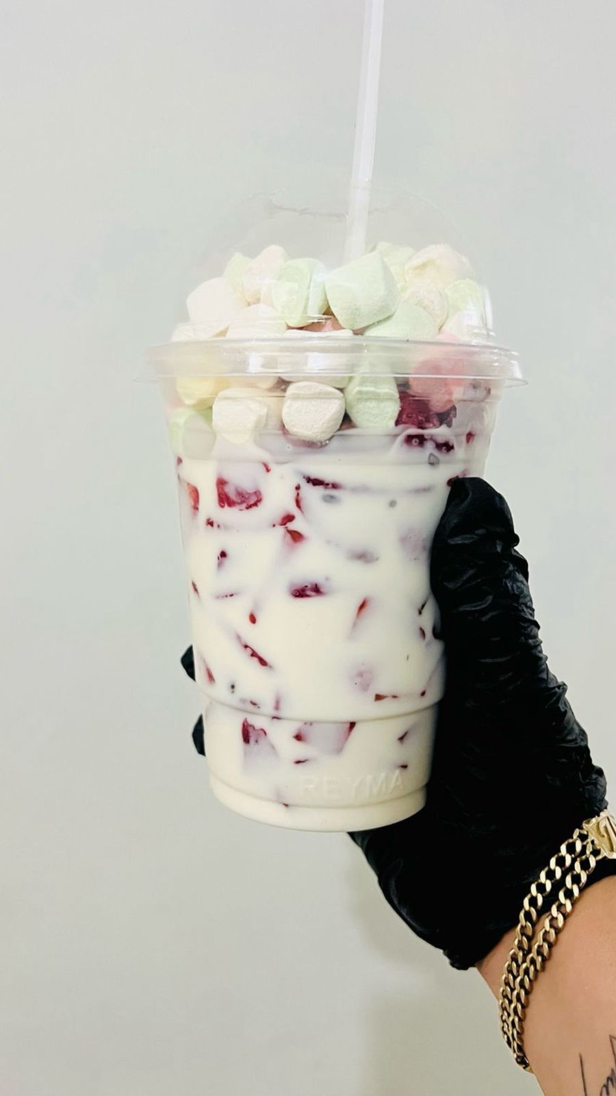 Con topping de bombones suaves y esponjosos.