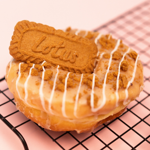 Café, Lotus y crumble. Glaseado de café con crumble de galleta Lotus y topping crujiente. Un favorito gourmet de temporada.