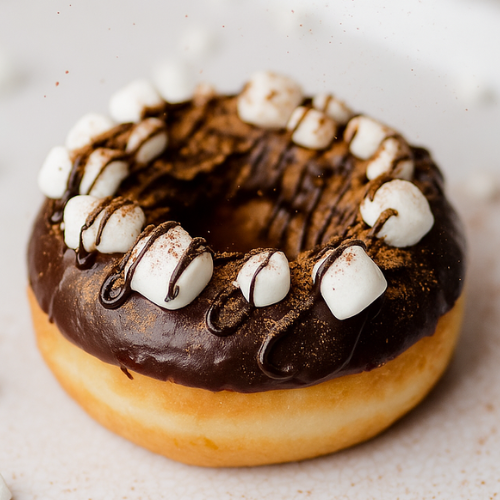 Chocolate, malvaviscos y Abuelita: el combo perfecto. Dona de chocolate suave con mini malvaviscos y un toque de chocolate Abuelita. Ideal para el invierno.