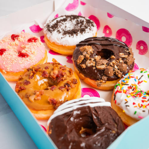 Déjanos sorprenderte. Incluye 6 o 12 donas sorpresa. Selección curada por nuestro equipo con nuestras donas más frescas, favoritas del día y opciones gourmet. La opción más económica por dona.