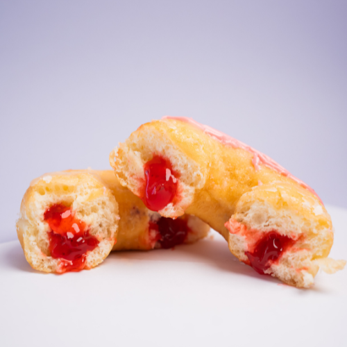 Glaseado de fresa con crumble casero. Una dona fresca y deliciosa que encanta todo el año.